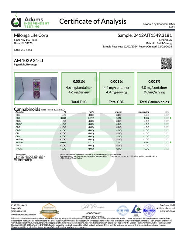 A 5mg THC, surprisingly caffeinated (110mg, so heads up) yerba mate with subtle mint and low-key açaí flavor. Honestly? We weren’t sure mint and açaí would play nicely, but here we are. It tastes earthy and clean, with mint bringing freshness without tasting like toothpaste. The caffeine kicks in for a steady energy boost, but the THC chills it out enough so you don’t start overthinking your life. Win-win.