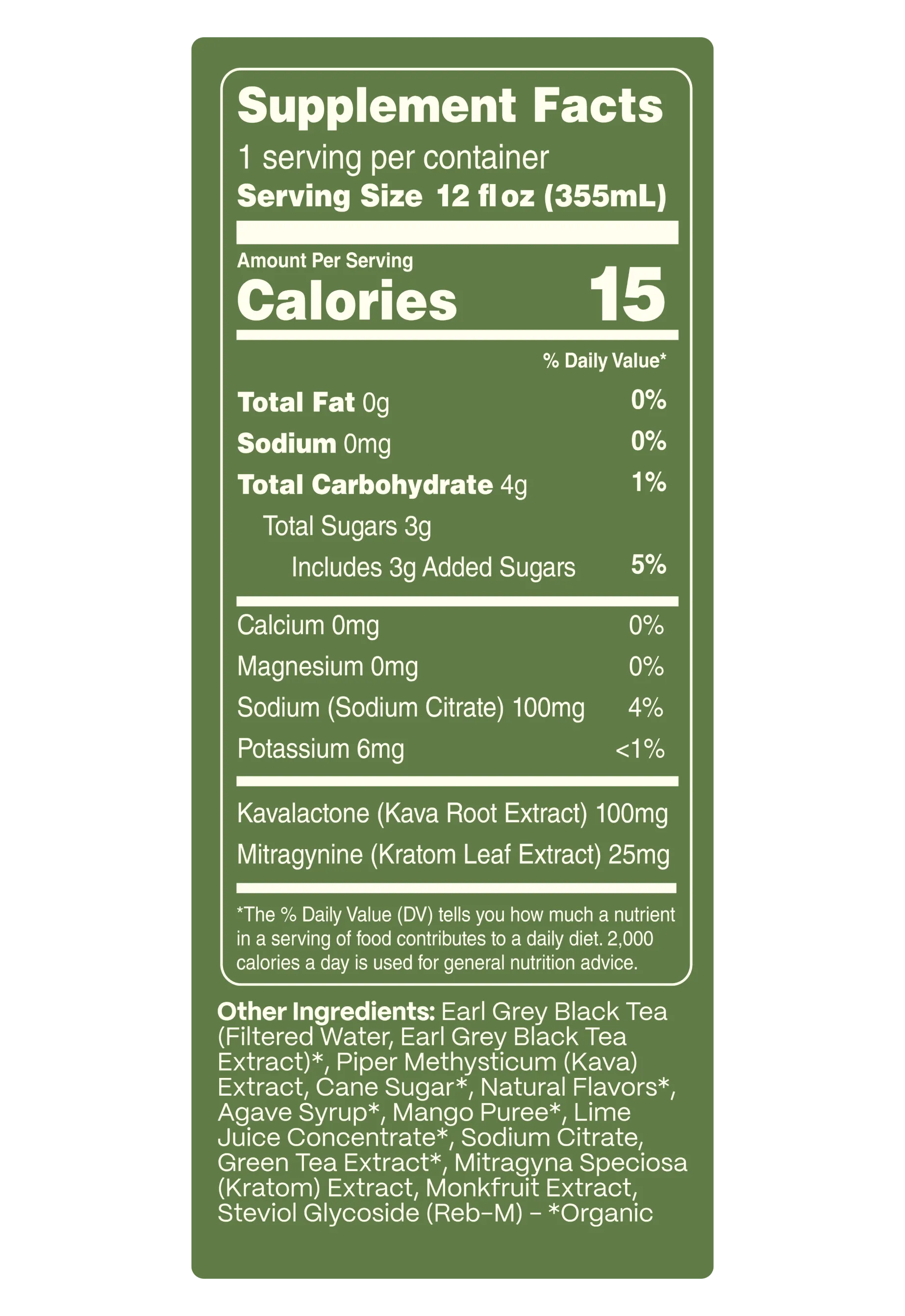 • Functional blend: Kava Extract, Mitragyna Speciosa Leaf (Kratom)