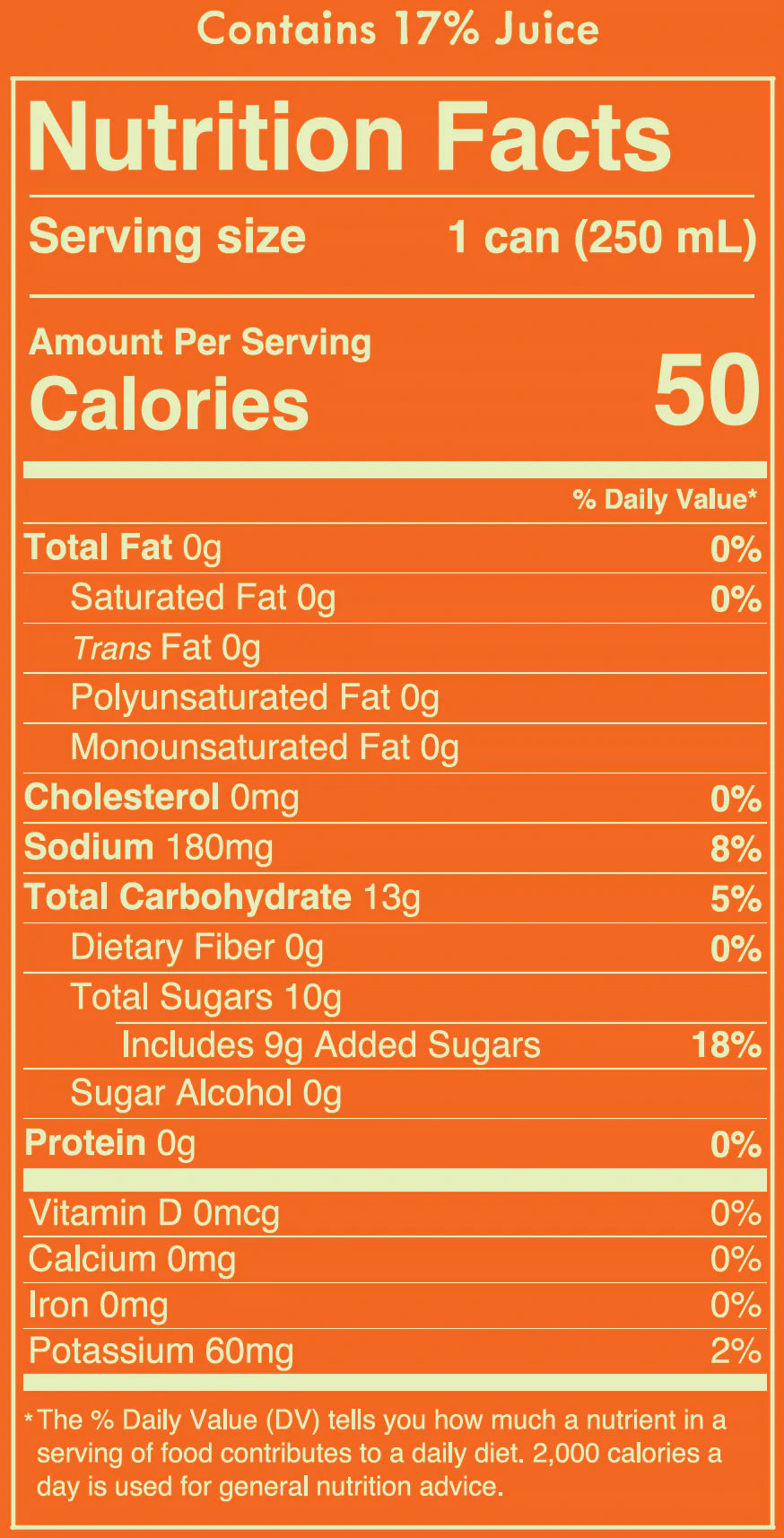 Nutritional Info (per 8.5oz can): 50 Calories | 180mg Sodium | 13g Carbs | 10g Sugar | Non-alc | Vegan | Adaptogen blend with ashwagandha & American ginseng
