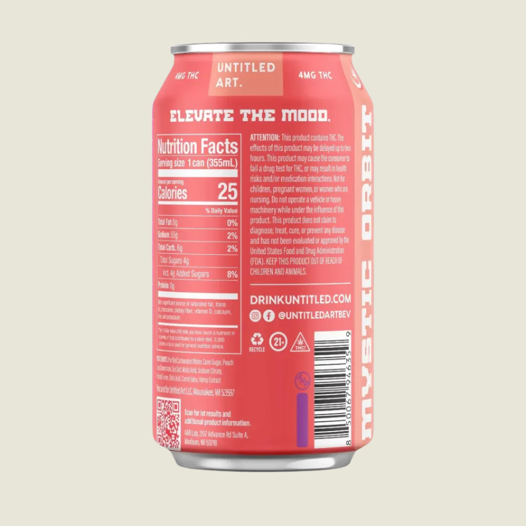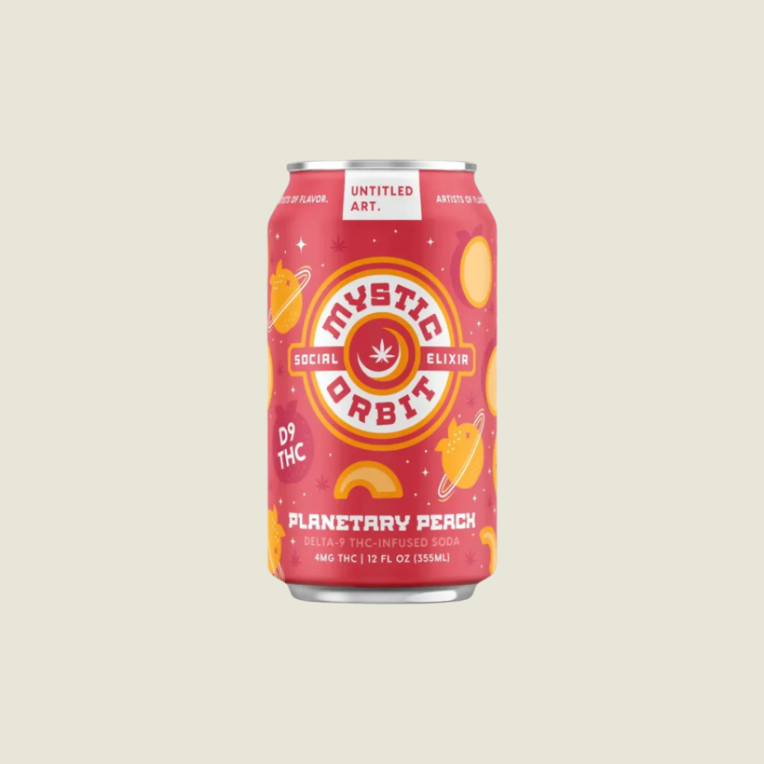 Glide through peachy galaxies with Mystic Orbit Planetary Peach. This velvety soda is infused with natural flavors, electrolytes, and 4 mg of hemp-derived delta-9 THC. A smooth, stellar sip every time.